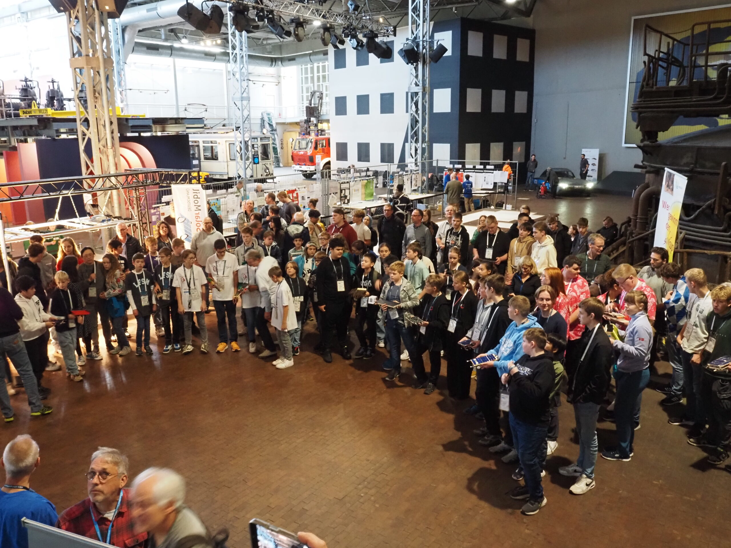 Nach der nachhaltigen Anreise mit der DB startete das Abenteuer mit den Testläufen am Freitagnachmittag. Hier traten erste kleinere technische Probleme auf, die aber in der Werkstatt schnell gelöst werden konnten und so erkundeten die insgesamt 16 Schülerinnen und Schüler des Gymnasiums Königsbrunn und des Jakob-Fugger-Gymnasiums im Anschluss die größte Stadt des Ruhrgebietes auf der Suche nach einer Abendverpflegung. Nach einer kurzen Nacht in der DJH-Dortmund ging es dann in der DASA-Dortmund um die begehrten Pokale und Siegesprämien.