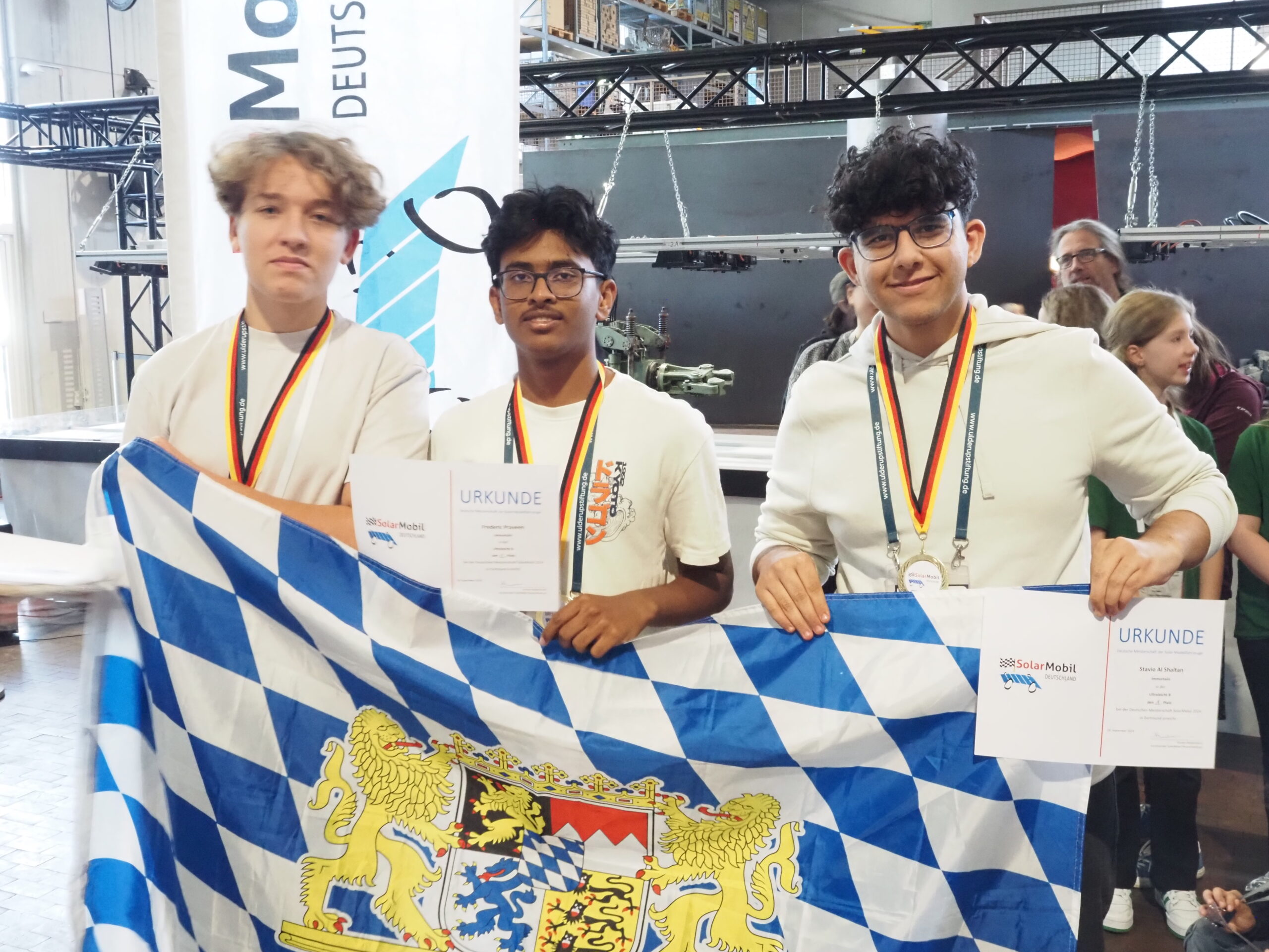 Das Team EIS-CE vom Jakob-Fugger-Gymnasium, das mit einem Modell des ersten ICEs in der Solar-E-Klasse antrat, belegte nach den Performance-Rennen einen hervorragenden 2. Platz und im Verfolgungsrennen musste man sich nur dem Team ETA150 aus Hankensbüttel geschlagen geben und so war der deutsche Vizemeistertitel verbunden mit 300€ Preisgeld sicher. Das Team NIKE vom Gymnasium Königsbrunn landete mit ihrem Modell der Adler-Lokomotive auf dem hervorragenden 3. Platz.